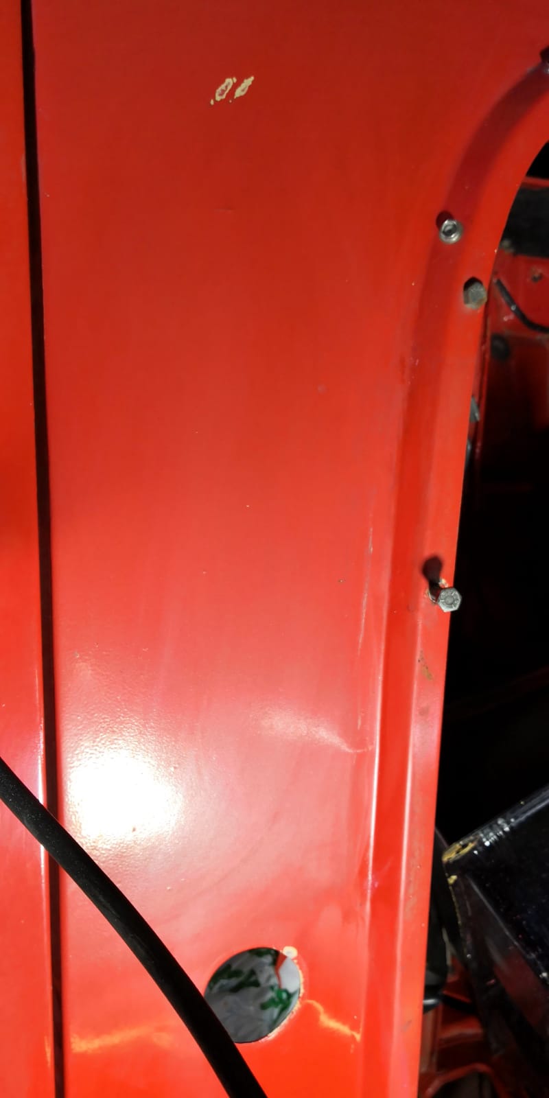 Beim Lack sieht´s weniger gut aus: Hier ist noch der zweite Lack drauf (Farbcode CAD = Flamenco Red)…der wurde aber offenbar mit der Rolle aufgetragen:Orangenhaut wo man hin schaut